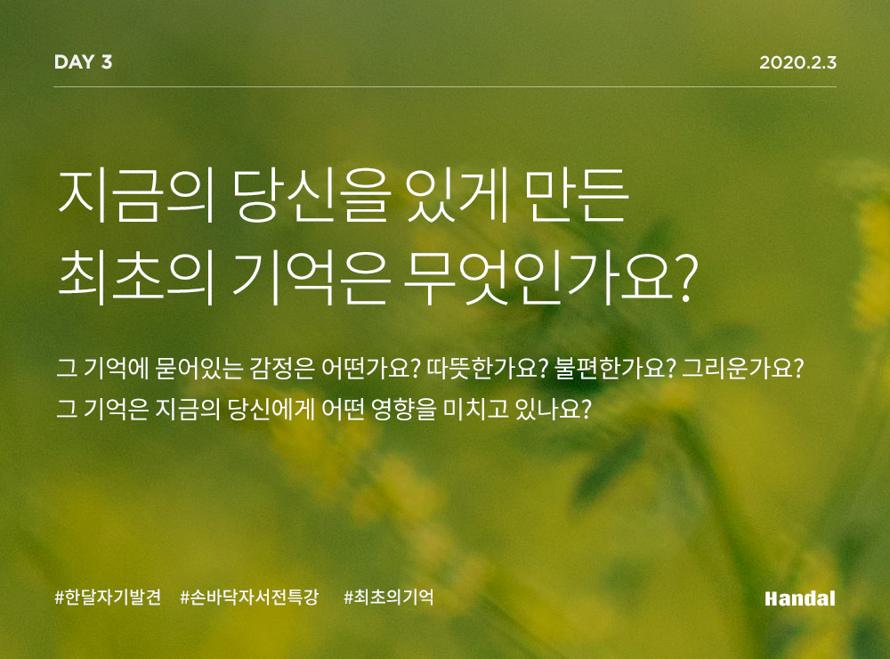 지금의 당신을 있게 만든 최초의 기억은 무엇인가요?