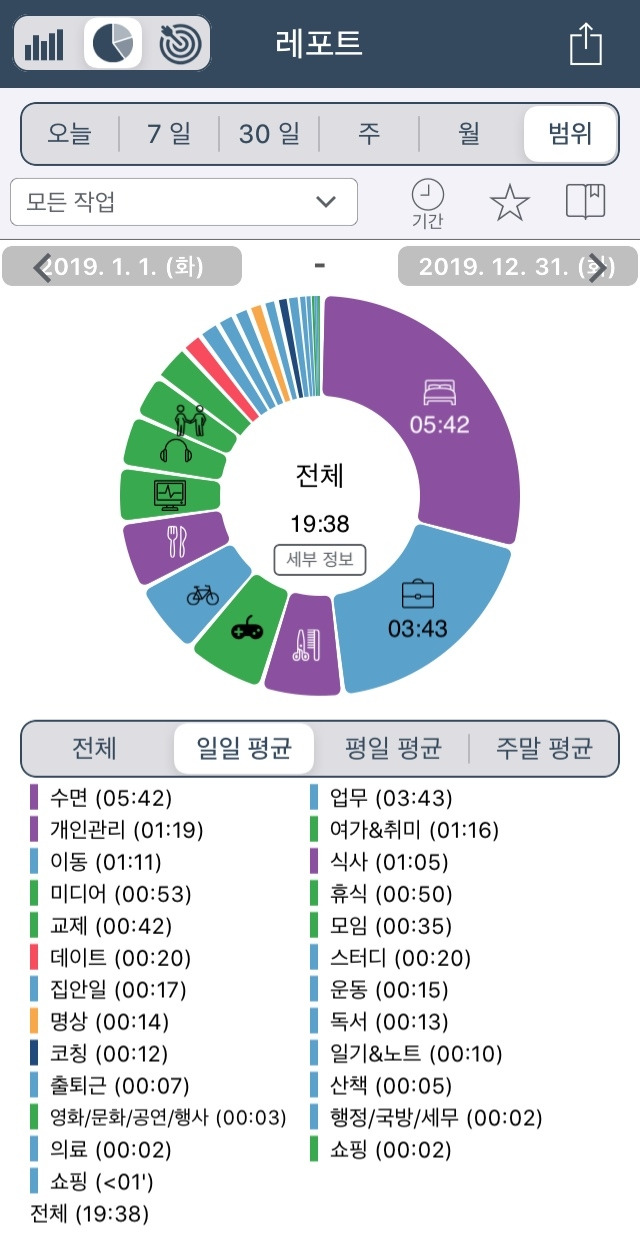 난 지난 1년간 타임트래킹 앱으로 시간기록을 해왔다.