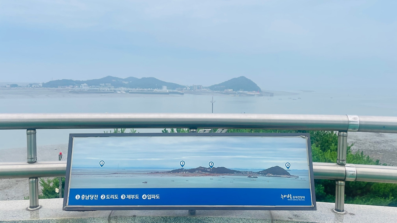 비가 조금씩 내리기 시작했지만, 갈 수 있는 데까지 걸어보자는 마음으로 계속 걸었다. 해당화가 피어 있고, 멀리 전망대가 보였다. ‘누에섬 전망대’라는 이름이 붙어 있었다. 올라가 보니 전시실과 시원한 에어컨. 잠시 앉아 쉬며 기록을 남겼다.