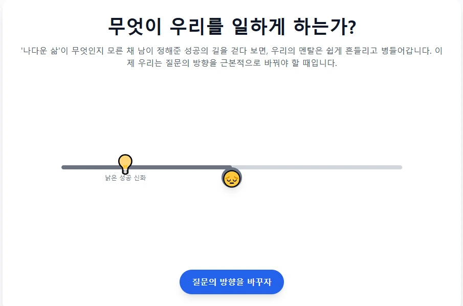 우리는 모두 열심히 살아갑니다. 사회가 정해준 성공의 목표를 향해 치열하게 달리지만, 어느 순간 문득 멈춰 서서 '나는 지금 왜 이 길을 가고 있을까?'라는 공허함과 번아웃을 마주하게 됩니다. 열심히 달려왔음에도 불구하고, 정작 중요한 '나' 자신을 잃어버리는 것입니다.