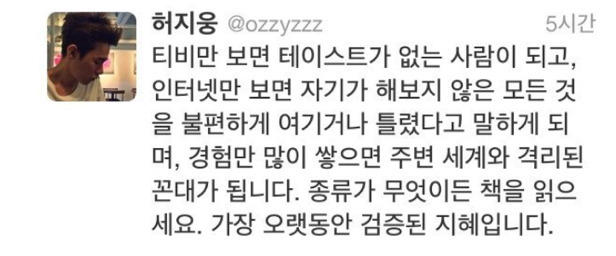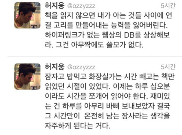 허지웅의 예전 트윗도 굉장히 내 맘에 와 닿았다. 진짜 나도 일부러 두꺼운 책만 찾아다니며 읽었던 적이 있다. 그리고 다음 읽을 책을 선정하는 기준은 같은 작가의 책이나, 책 뒤편에 있는 출판사의 추천 책. 이렇게 책을 읽다 보니 책마다 연결 고리가 생기고 나만의 '지식'이라는 게 조금 쌓이기 시작하던게 느껴질 정도였다. 논술을 준비하기 최적의 독서다!라고 생각했지만 논술 준비뿐만 아니라 나에게 적합한 독서방법이 었던 거겠지. 인터넷에서도 위 트윗들처럼 물론 좋은 글을 찾고 많은 정보를 얻을 수 있다. 하지만 인터넷에서 얻은 한 조각의 정보를 통해 내 지식을 확장하는데 활용하는 것이 아니라, 비판적인 사고 없이 받아들이기만 하면 그냥 '어디서 들은 뜬 상식'이 머릿속에 맴돌 뿐이다.
