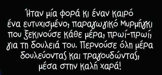 왼쪽이 카타레부사로 쓰여진 그리스 국기 설명, 오른쪽이 디모티키 그리스어로 써진 <개미와 베짱이>의 앞부분이다. 사실 나도 카타레부사를 배운 적이 없어 잘 모르지만, 육안으로도 구분할 수 있는 차이는 바로 악센트. 이외에도 외래어를 그리스어로 바꿔 부른다던가, 문법규칙이 더 단순하다. 카타레부사는 외부의 영향을 받지 않고 그리스의 뿌리를 지킨 언어라는 아주 좋은 취지에서 만들어지기는 했다. 하지만 카타레부사를 사용하는 지식인들의 특권의식을 조장하기도 하고 실생활에서 일반 국민들이 사용하는 디모티키 그리스어와 달라 결국 1976년 디모티키 그리스어가 공식 언어가 되었다. (휴 다행!!)