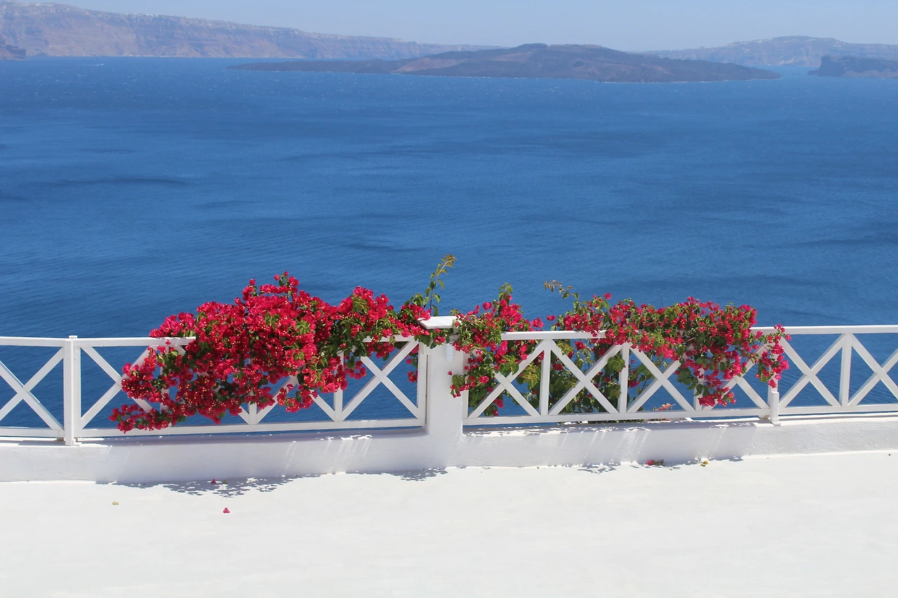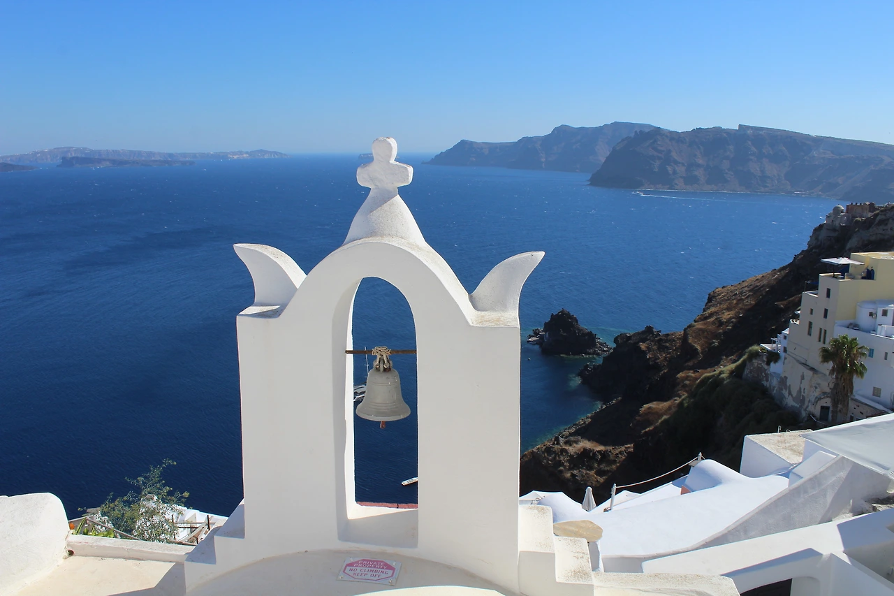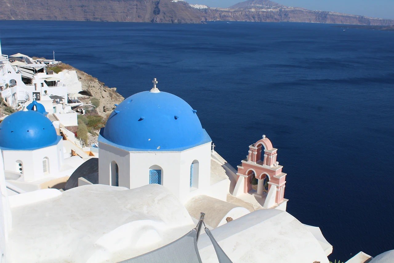 하얀 벽, 푸른 돔 지붕, 이보다 더 푸른 쪽빛의 바다.