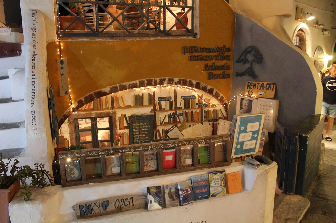 이아마을의 명소, 아틀란티스 서점에도 들렀다.