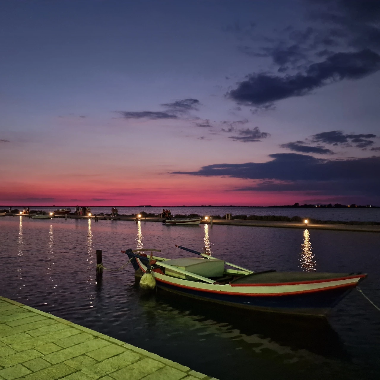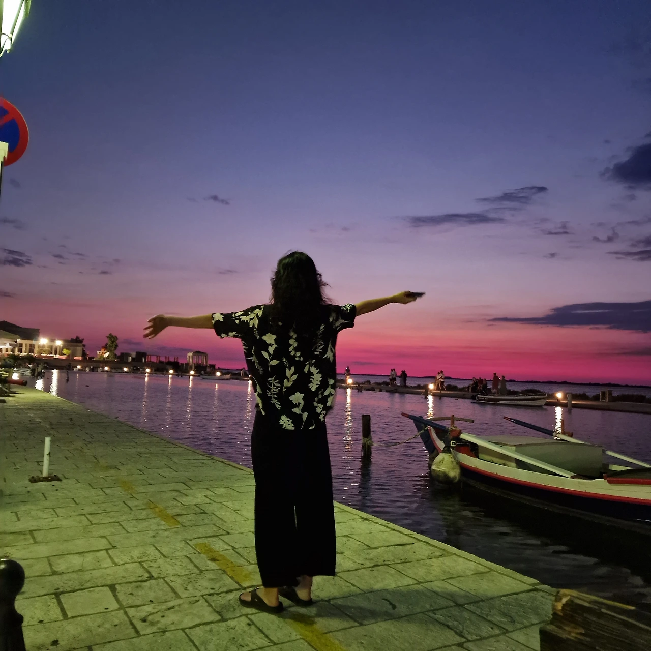 신나게 수영 후 호텔에서 씻고 시내에 밥을 먹으러 나왔다. 해 지는 반대편이었지만 붉은 야경이 예쁩니다. 한국이었다면 조개구이 횟집 간판으로 가득했을 텐데 이런 조용한 바다가 더 좋다.