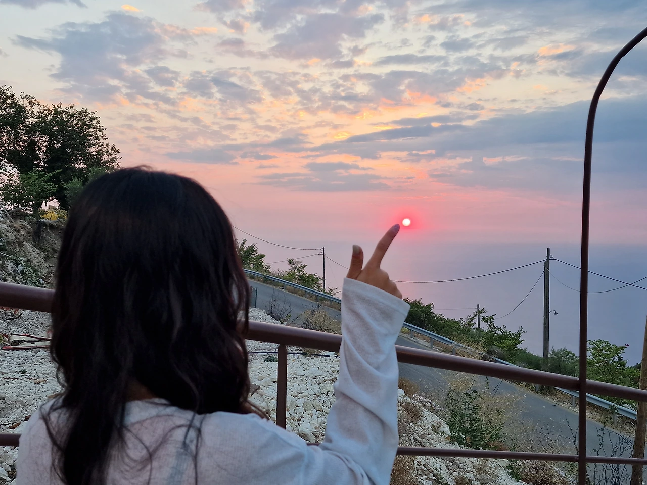 우리는 대신 조금 더 앞에 위치한 곳으로 빠르게 이동해서 식사를 했다. 좀 가려지긴 했지만 다행히 여기서도 예쁜 석양을 볼 수 있었다.