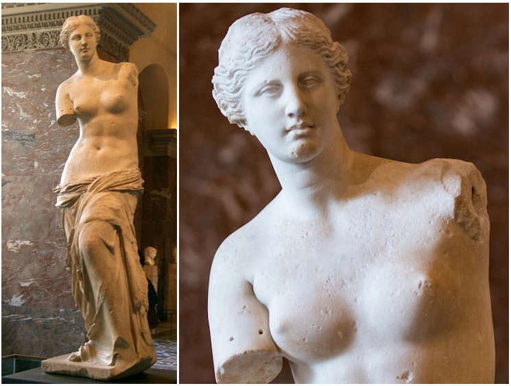 밀로의 비너스는 황금비율, 8등신을 나타낼 때 항상 등장하는 대리석상으로 미와 사랑의 여신인 아프로디테를 묘사하고 있다. 그리스의 밀로스 섬에서 발견되었기 때문에 밀로의 비너스라는 이름이 붙게 되었고 나는 앞으로 석상을 밀로의 아프로디테라고 하겠다.