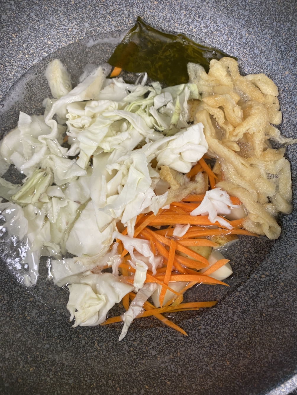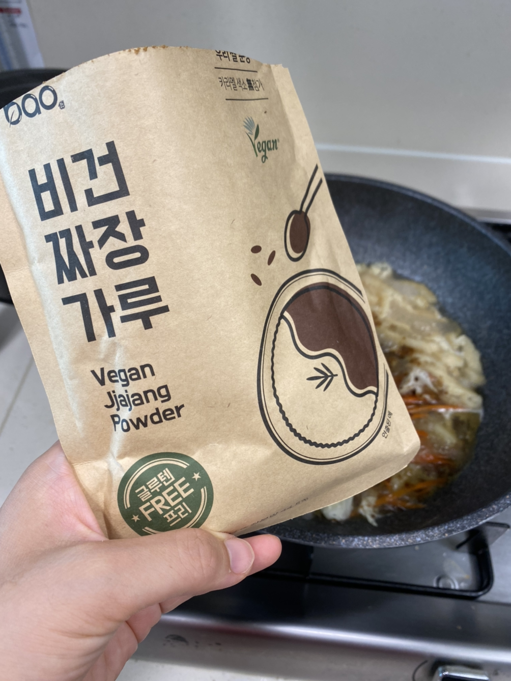 그렇지만 점심 먹고도 헛헛했는데 저녁에도 헛헛할 순 없었다. 뭘 해 먹어야 이 헛헛함을 달랠 수 있을 것인가. 짜장 떡볶이를 해 먹기로 했다. 왠지 떡볶이는 고기가 안 들어가도 소비욕을 과시하며 먹은 듯한 느낌이 드는 음식 아닌가(나만 그런가). 지금 내가 느끼는 헛헛함은 마음에서 오는 것이니, 떡볶이 정도면 달래줄 수 있을 듯했다. 마침 며칠 전 쇼핑몰에 비건 짜장 가루가 있어 신기해서 사다 놨었는데 이게 이렇게 요긴하게 쓰일 줄이야. 다시마로 국물을 내고 양배추, 감자, 당근을 썰어 넣고 말린 유부와 짜장가루를 풀어서 짜장을 완성했다.