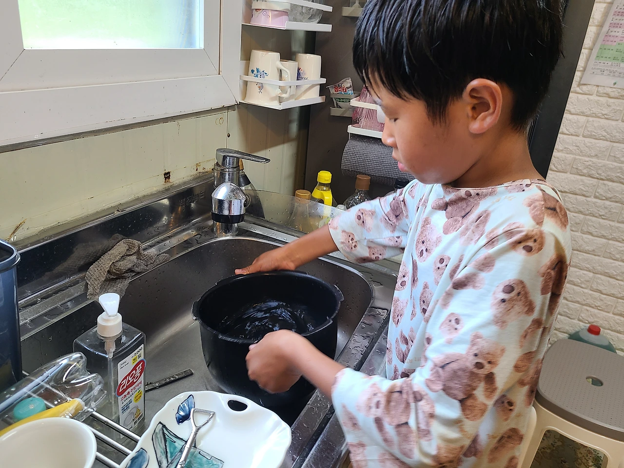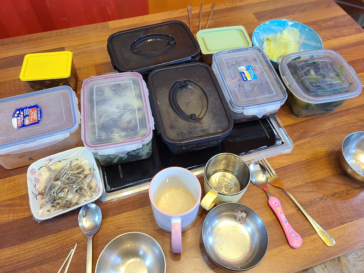 글 쓴다고 잠깐 밖에 있었더니, 냉장고에 있는 반찬 다 꺼내놨다. 오늘도 티셔츠를 앞 뒤 돌려 입고선.