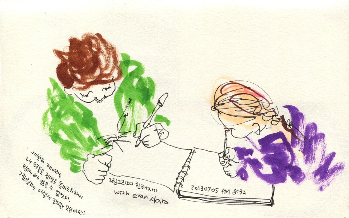 우리가 언제 어디서 유럽 소녀들과 얘기를 나누며 그림도 그리고 서로의 문자에 관심을 가질 수 있었을까?