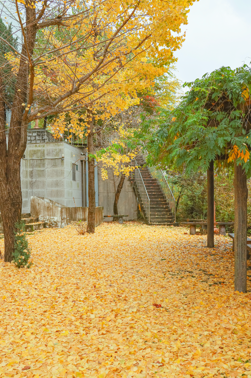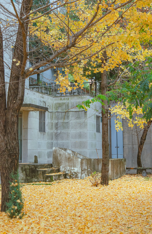 가을비가 온 후 감신대 학생회관 뒷편에는 낭만이 떨어져있다.