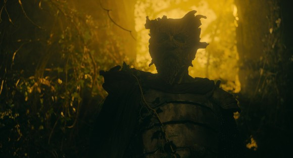 이후, 가웨인은 잠을 자기 위해 들어간 빈집에서 정령처럼 보이는 의문의 여자 위니프레드를 만난다. 그녀는 가웨인에게 연못에 빠진 자신의 머리를 건져와 달라는 이해하기 어려운 부탁을 한다. 그녀 목에 멀쩡히 붙어 있는 (것처럼 보이는) 머리가 허상이라는 얘기인가. 만일 그렇다면 그녀는 사람이 아닌 것이다. 그러니 가웨인은 물을 수밖에 없다. “아가씨, 당신은 사람인가요? 정령인가요?” 달리 표현하면, “보이는 것을 믿어야 하나요? 보이지 않는 것을 믿어야 하나요?” 위니프레드는 지금 보이지 않는 것을 믿을 수 있는지에 대한 문제를 출제하고 있는 것이다(로워리는 전작 <고스트 스토리>에서 초현실적 존재인 ‘고스트’의 가시화를 통해 관객들에게 보이지 않는 존재의 실존을 믿어 달라 하소연한 적 있다). 다행히 가웨인은 보이지 않는 것을 믿기로 결정한다. 그는 위니프레드의 부탁대로 물속으로 들어가 그녀의 두개골을 건져 올린다. 시험에 통과한 가웨인은 그 보상으로 소년병에게 약탈당했던 녹색 기사의 도끼를 돌려받는다.