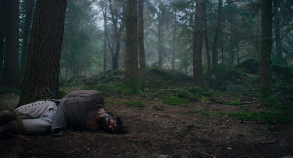 <그린 나이트>의 도입부에서 창틀 너머의 이름 모를 기사 부부와 가축들을 한동안 관조하는 쇼트는 마치 움직이는 그림을 감상하는 누군가의 시선처럼 형상화되어 있다. 불현듯 카메라가 뒤로 물러나는 순간까지만 해도 특정 인물의 뒷걸음질로 여겨졌던 쇼트는 후진의 움직임을 계속하면서 그 주체가 작중 인물이 아님을 밝힌다. 동시에 바깥의 세계를 투사하는 틀이 스크린 모양의 사각 창틀이라는 점을 넌지시 드러내며, 여자 친구의 물세례를 받고 번쩍 잠에서 깨어나는 주인공 가웨인의 모습을 하나의 흐름으로 잇는다. 그렇게 카메라는 하나의 움직이는 그림(영화)처럼 표현된 예술 세계와 차가운 물의 성질을 즉각 몸으로 받아들이는 현실 세계를 연계하며 두 세계의 물리적 단절과 내적 긴밀함을 동시에 암시한다. 현실에서 예술을 바라보다가 이내 그 세계를 흐릿하게 처리하며 온전한 현실로 돌아오는 카메라의 시점은 그런 점에서 감독 데이빗 로워리의 시점으로 읽힌다. 그리고 그 카메라가 투신하는 대상인 가웨인은 데이빗 로워리의 분신으로 보인다. 그렇다면 <그린 나이트>에서 데이빗 로워리가 자신의 분신 가웨인을 경유하여 도달하려는 곳은 어디일까, 더 중요하게는 그곳에 가닿기까지의 지난한 여정은 무엇을 의미하는 걸까.
