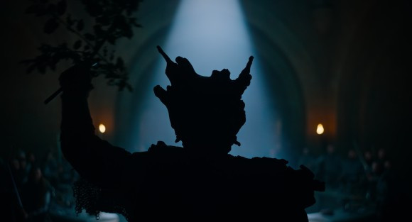 마침내 녹색 기사 앞에 당도한 가웨인은 그의 앞에 무릎을 꿇고 죽음을 기다린다. 그러나 아직 죽음에 대한 두려움을 완벽히 극복하지 못한 가웨인은 녹색 기사가 휘두르는 도끼를 계속 피하면서, 그곳에서 도망쳐 집으로 귀환한 뒤의 미래를 상상 속에 그려본다. <그린 나이트>의 하이라이트라고 할 수 있는 ‘집으로의 여정’ 몽타주 시퀀스에서 중요한 것은 그간의 여정에서 끝내 체현하지 못한 덕목들, 예컨대 (전쟁 피해자에 대한) 연민, 사랑의 윤리, 죽음에 대한 두려움의 극복 부문에서 고스란히 문제가 발생한다는 점이다. 그는 전쟁을 벌이며 국민을 희생시키고, 여자 친구 에셀을 가혹하게 배반하며, 전쟁통에 끝까지 성안에 머물면서 홀로 쓸쓸히 죽는다. 그런 점에서 이 몽타주 시퀀스는 필수 덕목들을 놓친 현실이 영화로 이행되었을 때의 끔찍한 결과를 상상 속에서 미리 상연해 보는 것이다. 잘못을 깨닫고 진실을 알게 된 현실만이 영화로 이행될 자격을 얻는다.