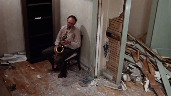 서서히, 그러나 묵직하게 우리를 옥죄는 심연의 서스펜스는 사실 영화의 도입부에서 이미 예견된 바 있다. 광장의 인파 속에서 콜을 향해 서서히 줌인되는 줌렌즈의 움직임은 그 속도감에 있어 서스펜스의 그것과 유사하다. <컨버세이션>은 그 느린 속도감을 통해 한 인간을 서서히 잠식해버리는 감시 행위의 무시무시한 파괴적 잠재성을 부각시킨다. 이 속도감은 박람회 시퀀스에서 제시되는 감시카메라의 속도감과도 연결되는데, 천천히 좌우를 훑는 이 감시카메라는 영화의 엔딩에서 도청기를 찾기 위해 자택의 벽지를 다 뜯어낸 다음 쓸쓸히 색소폰을 연주하는 콜을 포착하는 카메라의 패닝 속도와 동일하다. 구석 상단에서 천천히 좌우를 훑으며 콜을 내려다보는 이 카메라는 박람회 시퀀스의 감시카메라를 상기시키며 타인의 감시에서 결코 벗어날 수 없는 현대 사회의 불안을 추출해낸다. 코폴라는 아주 미니멀한 요소로 폭발할 것 같은 긴장감을 만들 줄 아는 감독이다. 궁극의 서스펜스가 무엇인지 체감하고 싶다면 <컨버세이션>은 최고의 선택이 될 것이다.