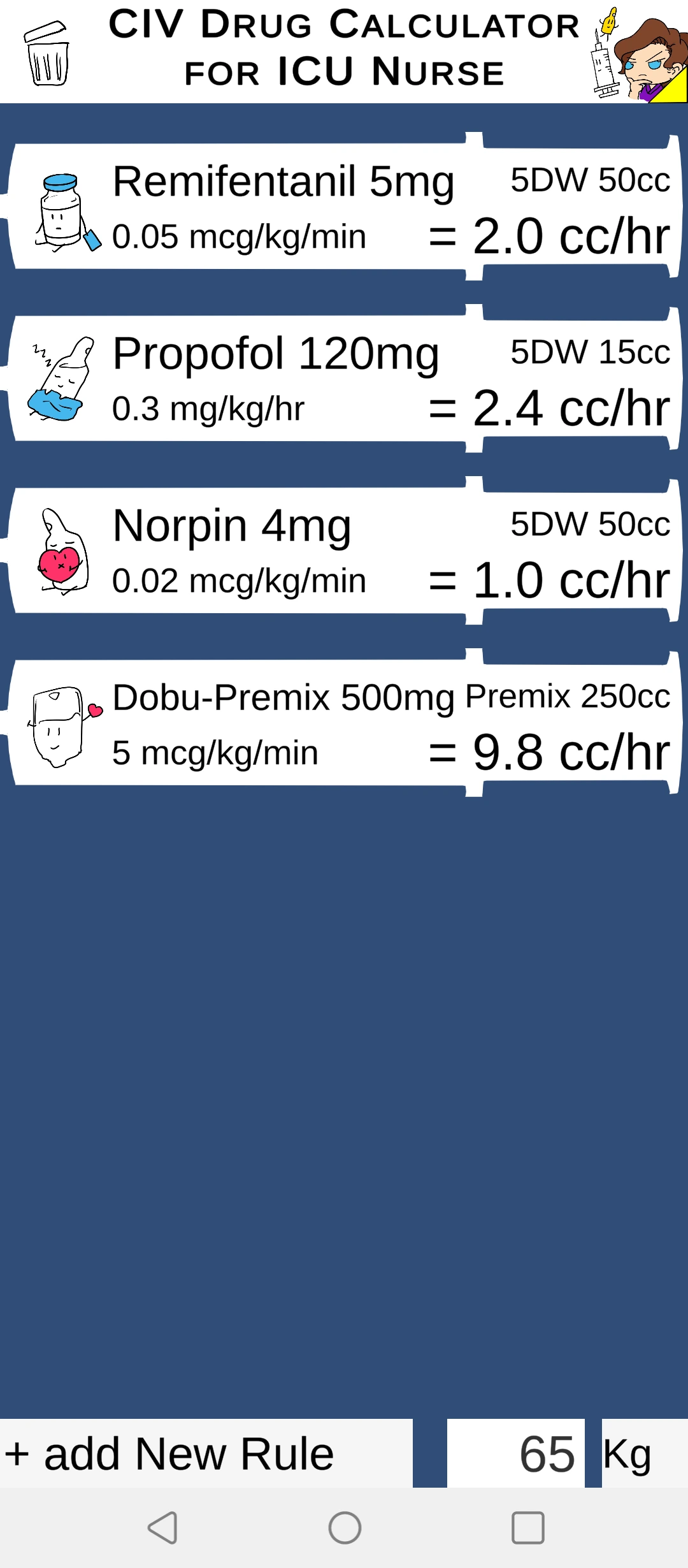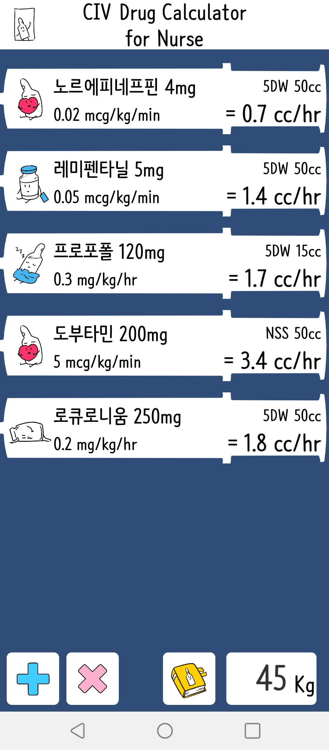 대부분 체중으로 약물 투여용량이 달라지는 경우가 많아 그때마다 일일히 계산해야 하는데 그럴바엔 미리 세팅된 값들을 체중만 입력해서 바로 계산하면 어떨까? 해서 앱을 만들어보기로 했다.