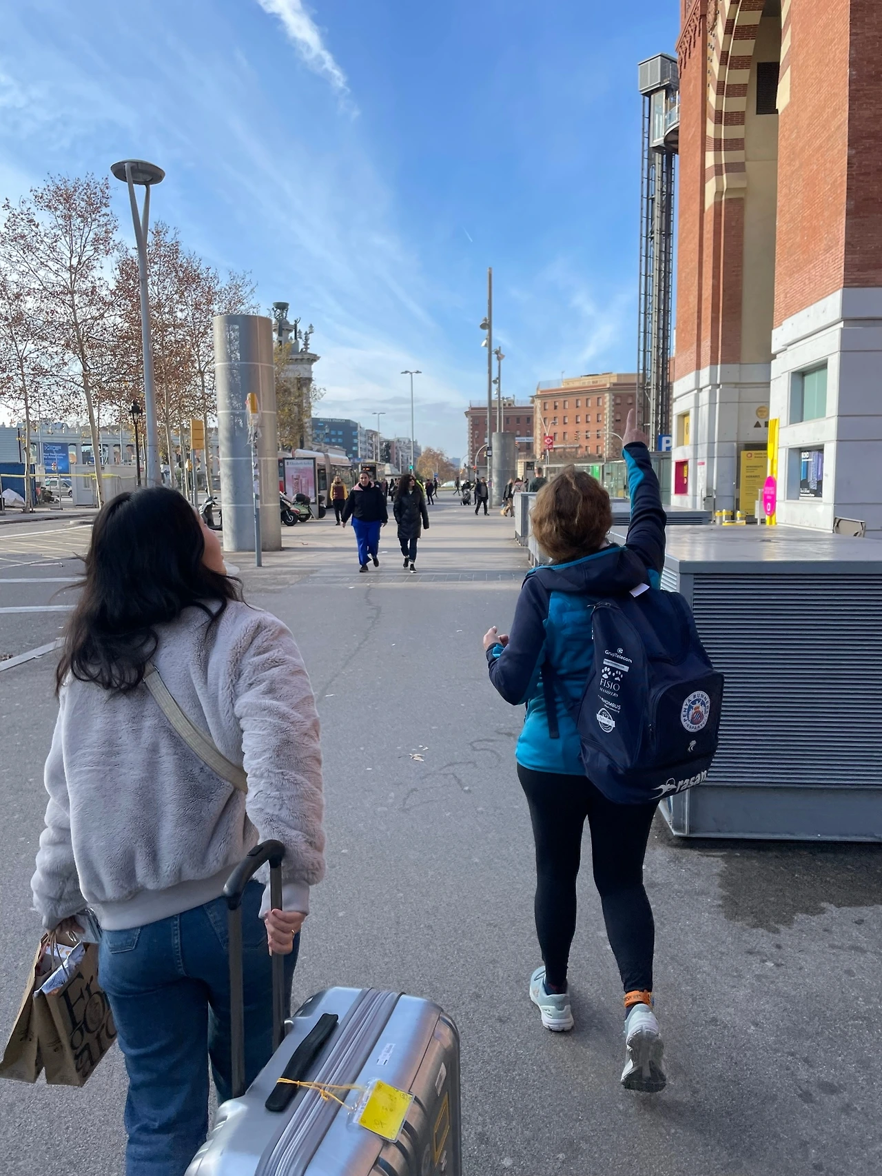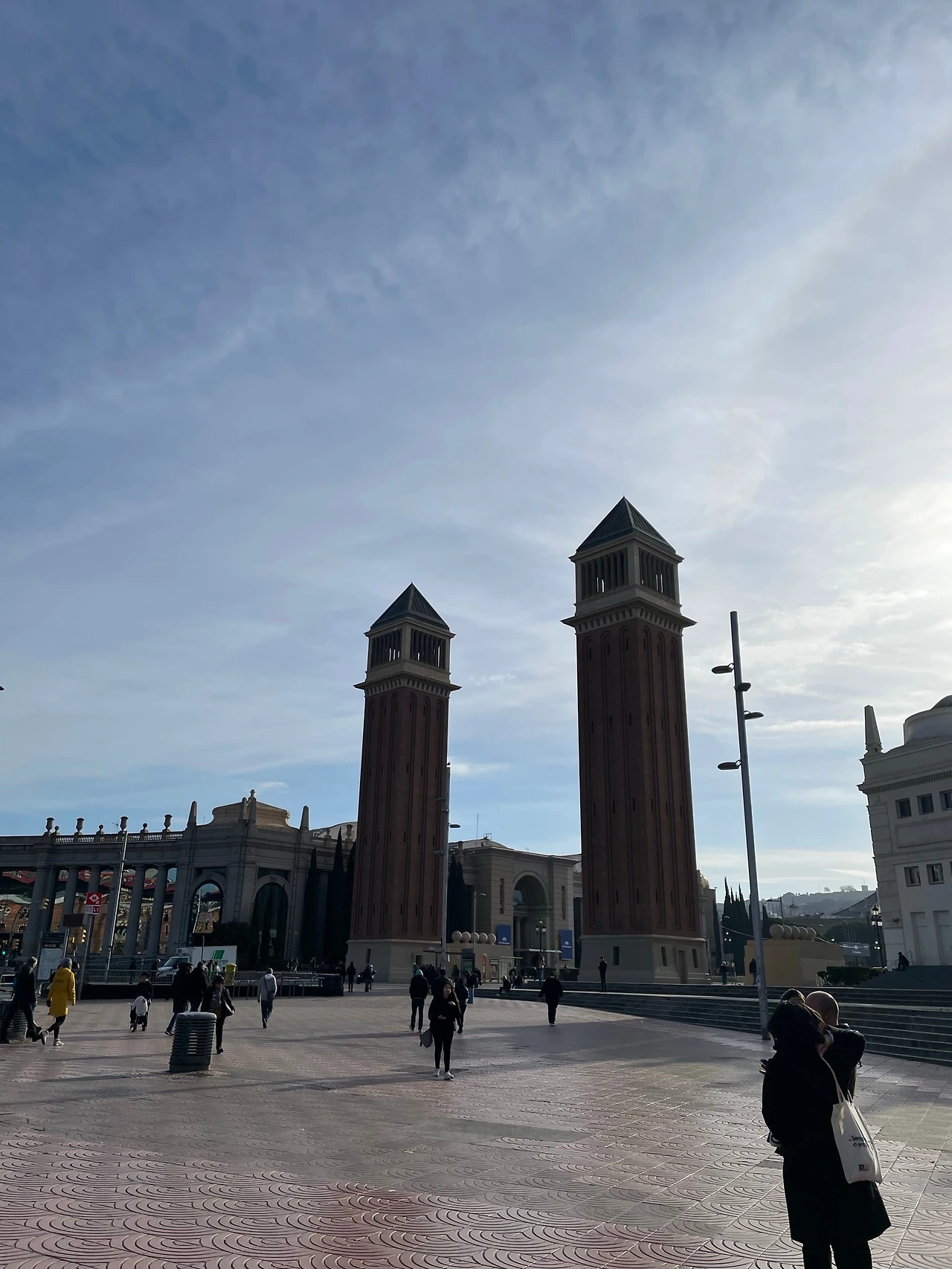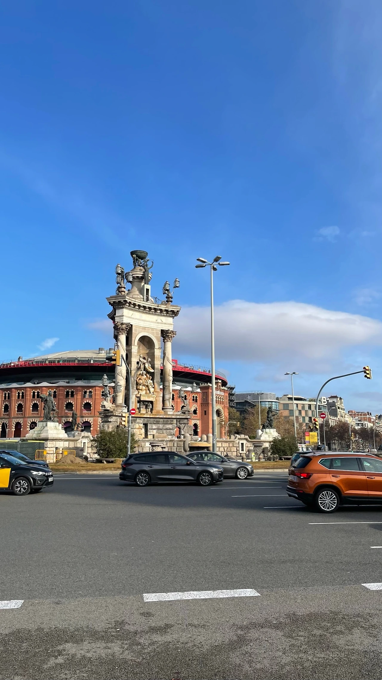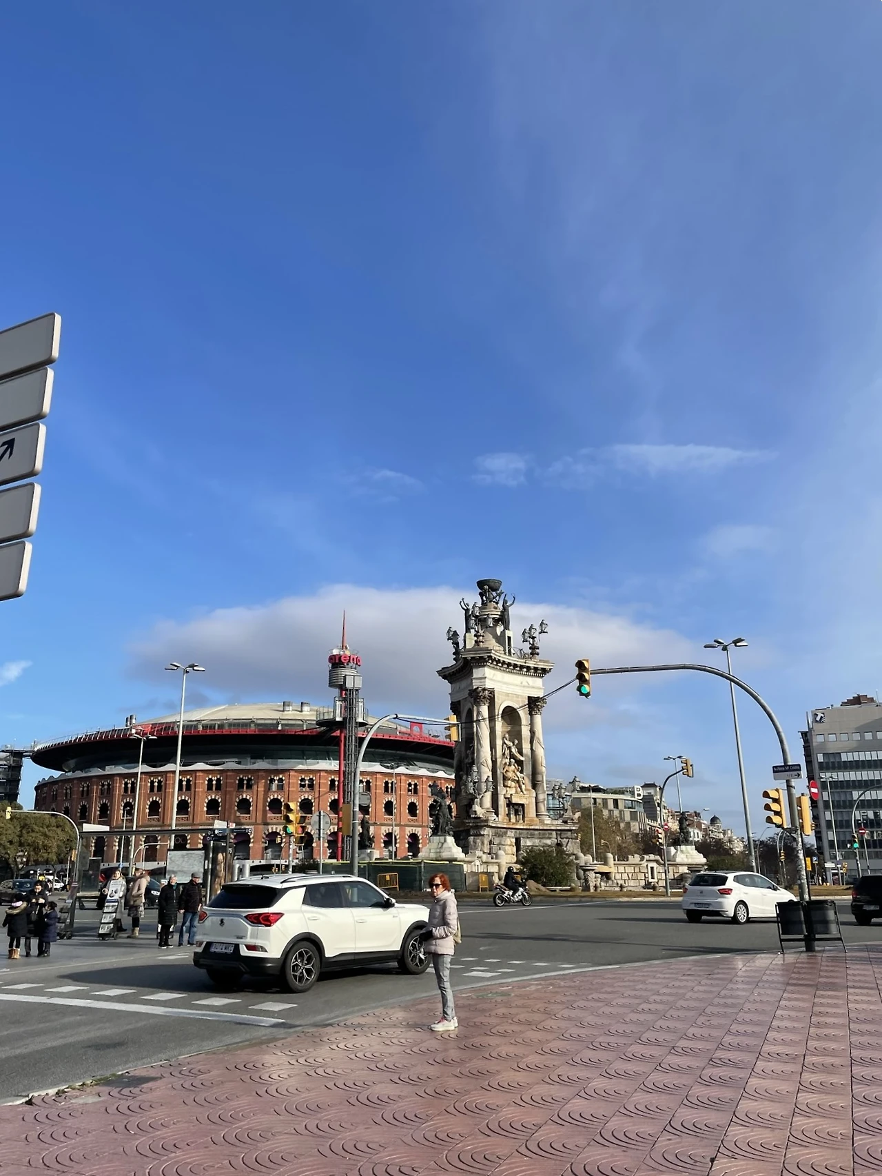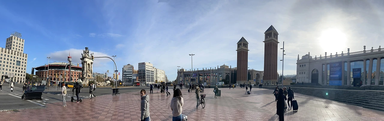 광장을 중심으로 두 기둥이 서있는 남동쪽으로 쭉 가면 몬주익 궁전이자 카탈루냐 미술관이 있었고 반대편엔 적색 벽돌 외관의 큰 원형 건물 - 바르셀로나 투기장(Las Arenas de Barcelona)이 있었다. 예전엔 투우를 하던 공간으로 알고 있었다. 2011년에 리뉴얼하면서 복합 커뮤니티 센터가 되었다고.