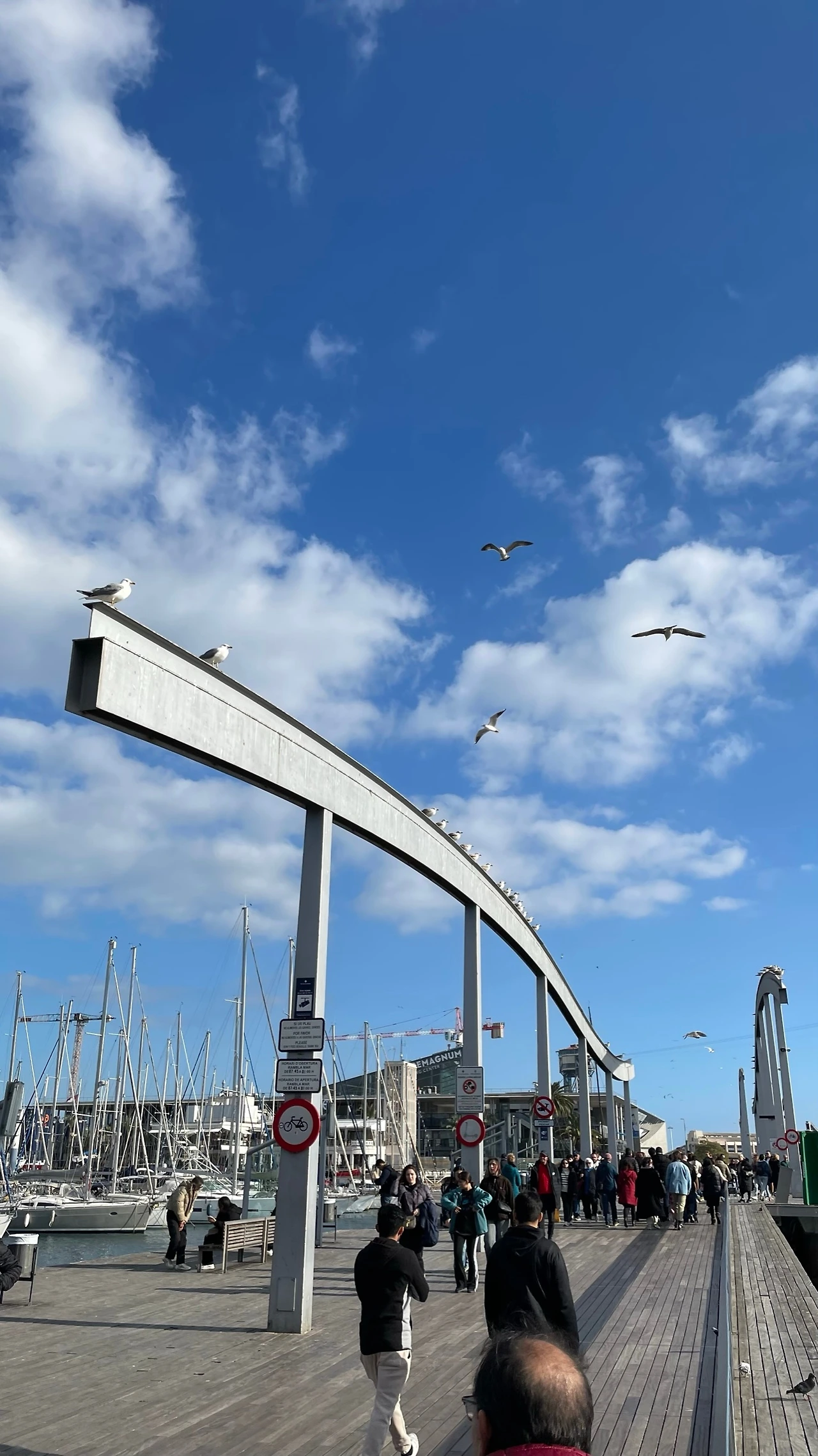 벨 항을 지나는 램블라 바닷길(Rambla de Mar)은 금방이라고 꺼질듯한 삐걱거리는 데크로 된 길이었다. 수많은 사람들이 아무렇지도 않게 건너는 데크 길이 바다 위에 떠있는데 듬성듬성 썩어 이빨빠지고 벌어진 틈새로 보이는 바다 때문에 금방 멀미가 날 것 만 같았다.