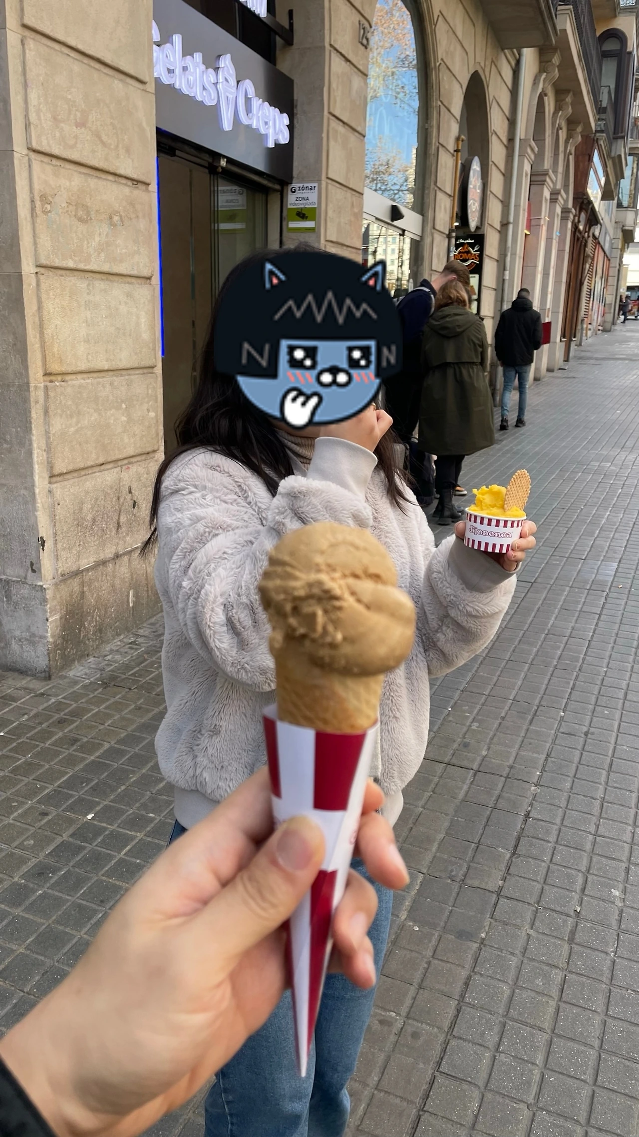 비둘기에 놀란 가슴 달래주랴, 가는 길에 젤라또 가게에 들러 아이스크림을 물고 길을 걷는다.