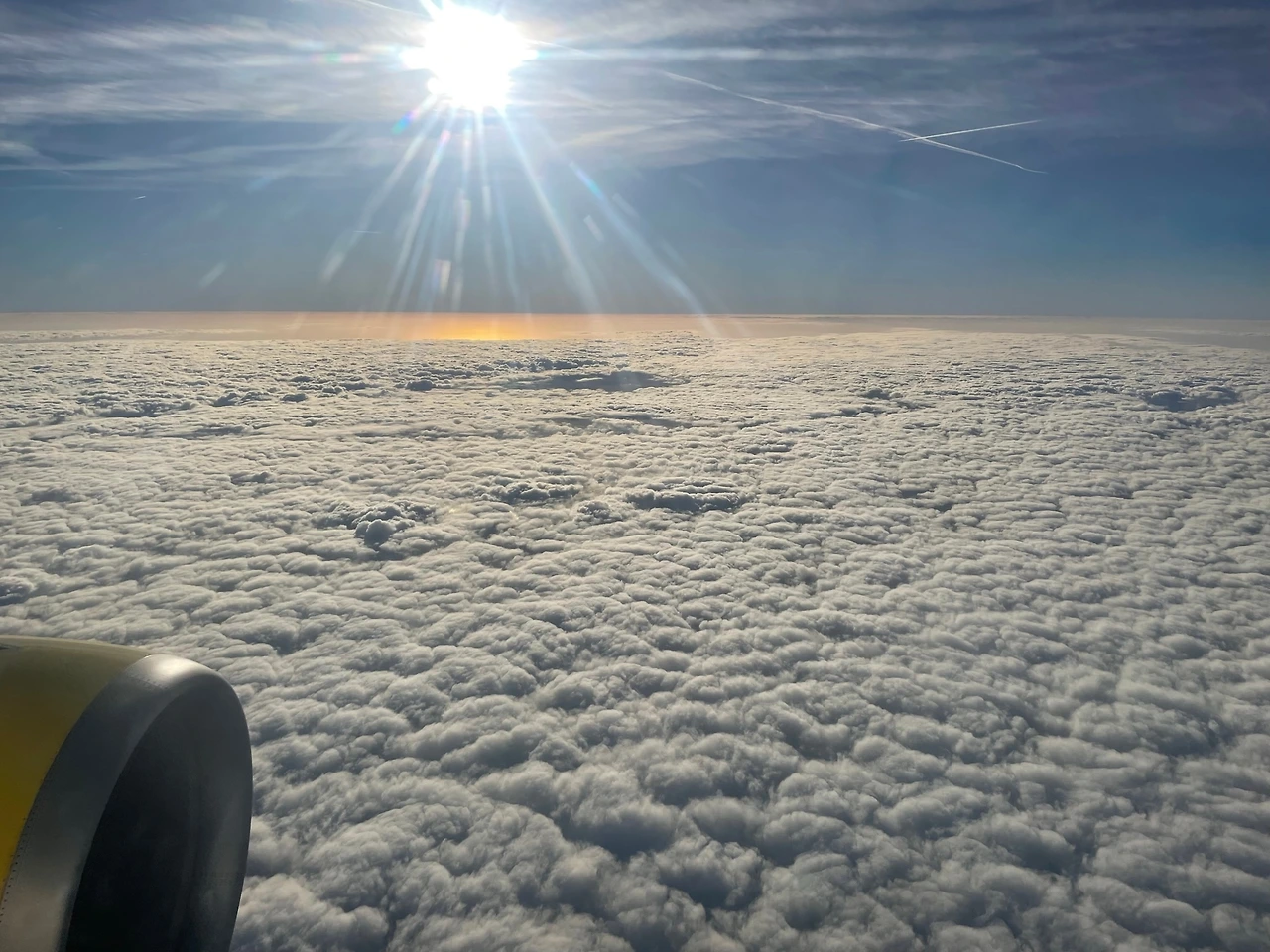에스파냐 항공사 vueling 의 비행기를 타고 하늘을 솟아오르자 양 떼 같은 뭉게구름들이 우릴 반긴다.