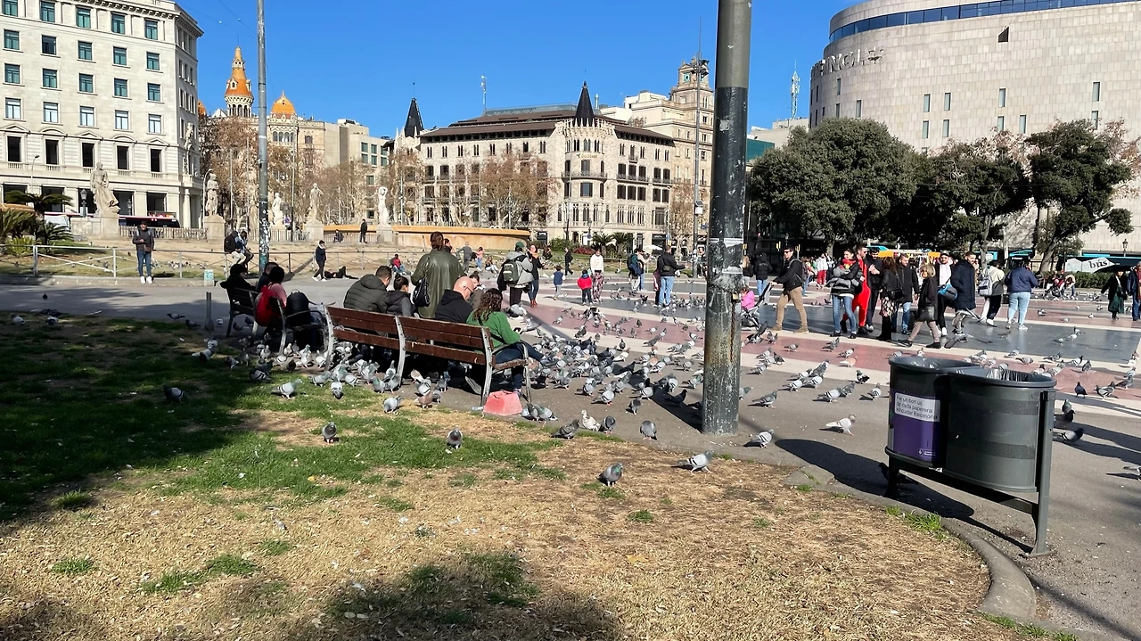 사람 반 비둘기 반, 카탈루냐 광장