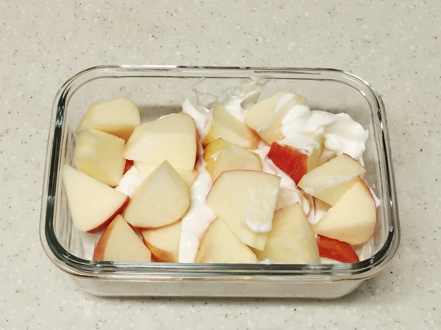 예쁘게 보여드리려고 위에서처럼 예쁜 그릇에 넣어 사진을 찍긴 했으나, 현실은 아래와 같이 글라스락통에 담는 경우가 많아요. 보통 아침식사로 그릭요거트 + 사과를 먹는 경우들이 많은데, 아침에는 이거 담을 시간도 없을 때가 많아 전날 이렇게 준비해두고 아침에 먹죠.. 이상과 현실의 갭이죠..ㅋ