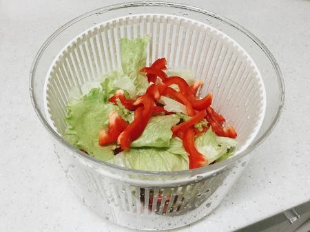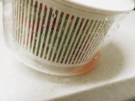 첫 번째 해야 할 일은 야채탈수기로 물기 제거