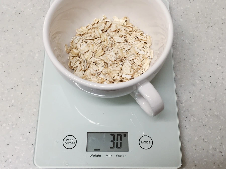 1. 오트밀 30g 담기