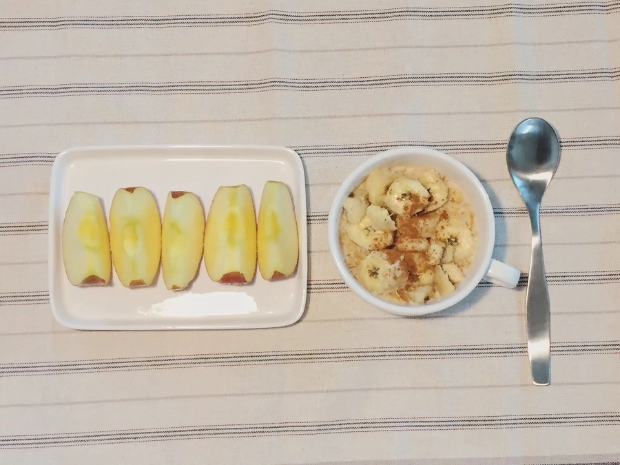 주로 바나나를 넣어 먹긴 하는데 사과가 있으면 사과를 넣으셔도 맛있어요. 바나나가 간편하긴 하지만요.