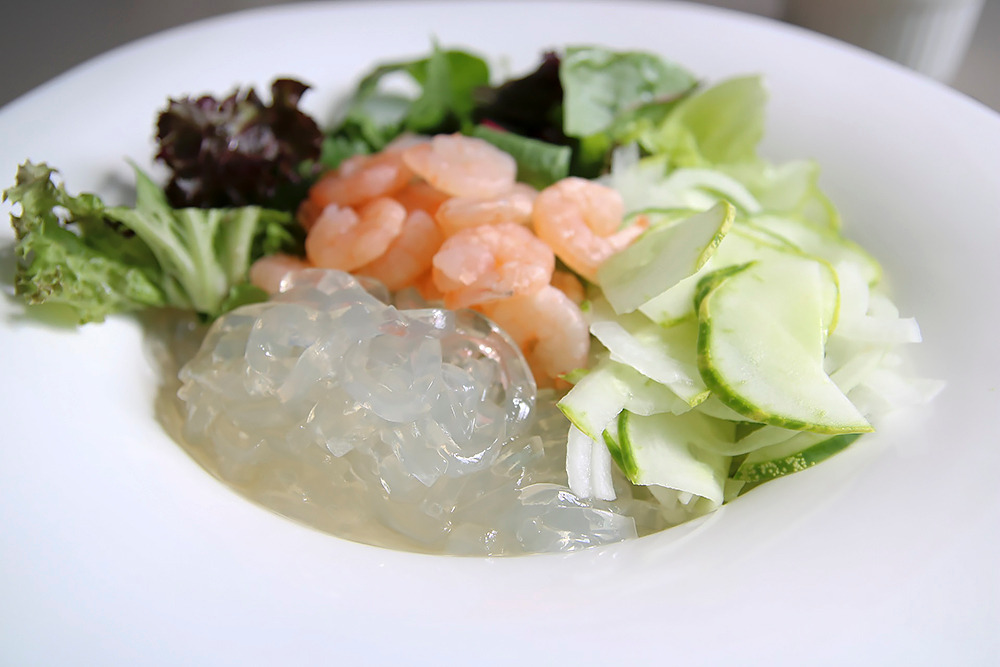 우무채 250g, 칵테일 새우 20마리, 오이/양상추/파프리카 등 샐러드 야채