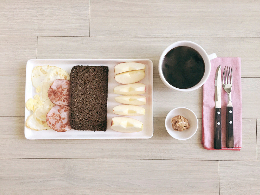 이 조합이 제가 참 좋아하는 조합인데요. 펌퍼니클 한 조각 잘라서 소금 넣지 않은 계란 프라이도 한 조각 올리고 땅콩버터 살짝 올려서 먹으면 딱 좋아요. 중간중간 사과와 아메리카노로 입가심을 해주면 시큼한 맛도 가셔서 좋아요.