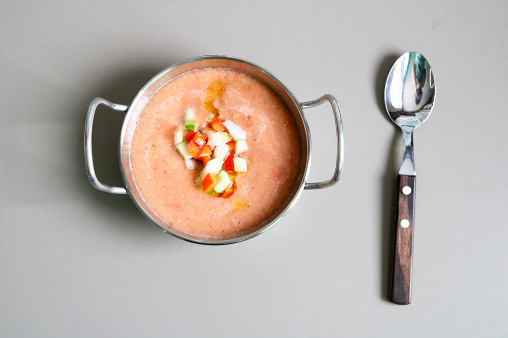 가스파초는 토마토, 오이, 양파, 파프리카로 만드는 스페인 냉수프로 여름에 먹으면 참 좋은 음식이에요. 특히 여름에 좋은 이유가 정말 간단히 만들 수 있어 더워서 아무것도 하기 싫을 때도 꽤 쉽게 만들 수 있어 좋아요.
