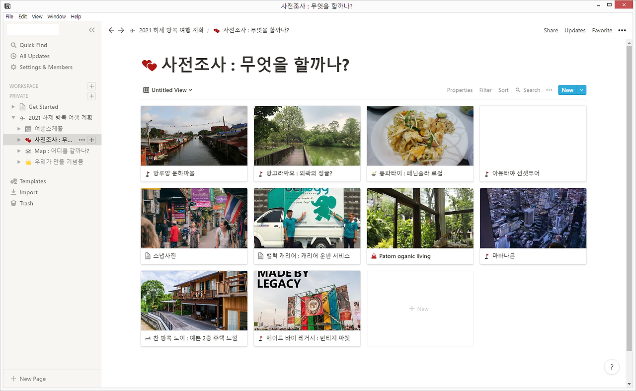 아직 1년이나 남은 상황인데, 이미 나는 노션에 파트를 만들어 계획을 작성하고 있다. 물론 아직 사전 조사 정도로 무엇을 하고 싶은지 작성하는 정도이다. 그러나 지금부터 하는 이유는 이 여행에 대한 기대감이 워낙 큰 까닭일 것이다.