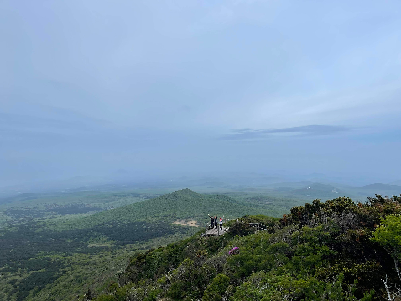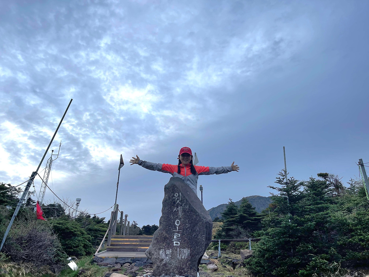꼭대기에서는 윗새오름 1700m 라고 적힌 비석이랑 나무 앞에서도 찍어주셨다.