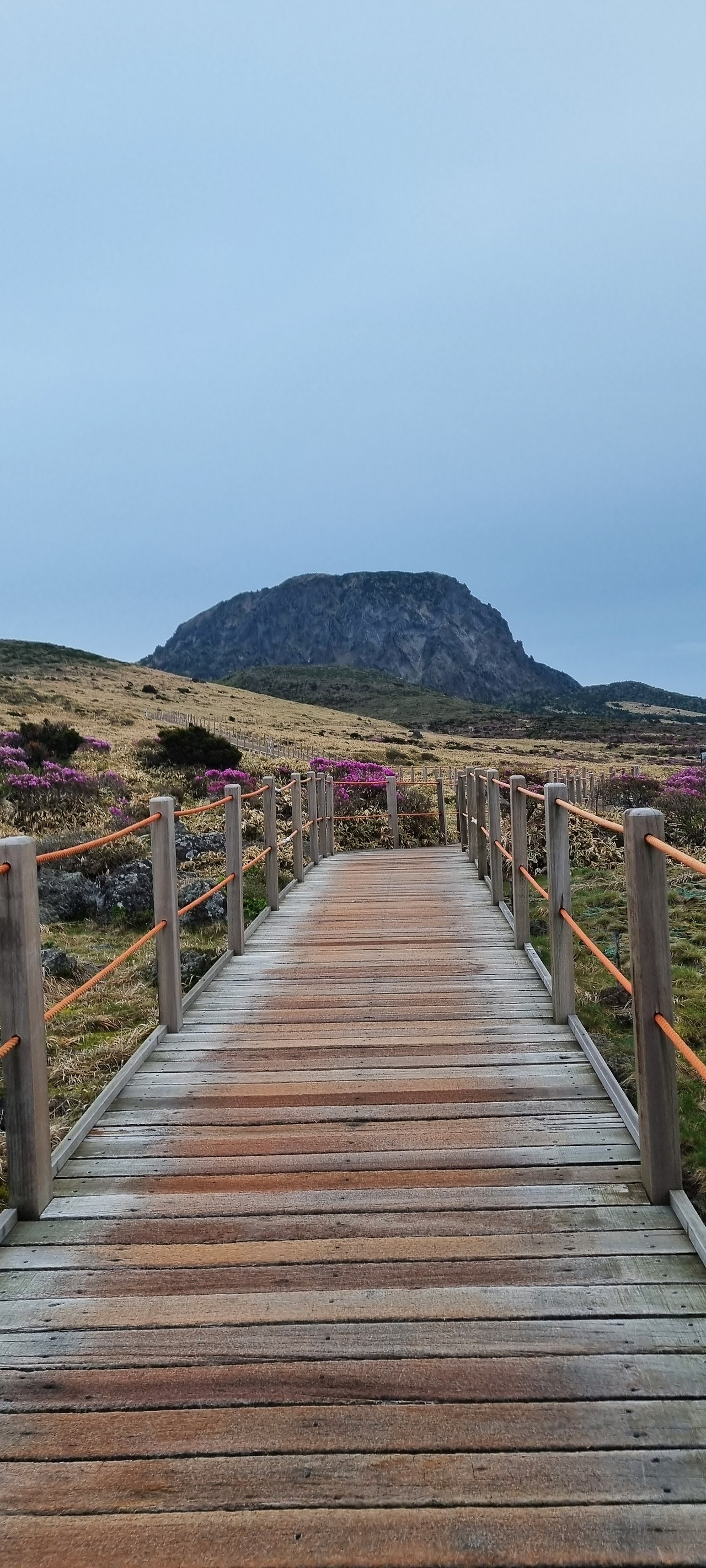 우와... 이렇게 한라산의 한 면을 경험하는구나 하면서 중간중간 병풍바위와 그림같은 풍경을 보며 올라갔다. 영실을 올라가다보면 나무로 데크가 잘 만들어진 길이 나와서 꼭대기에 다다르면 내내 달릴수도 있다. 산에서 달린다니.. 또 새로운 경험이다. 영실 윗새오름에서는 그게 가능하구나.