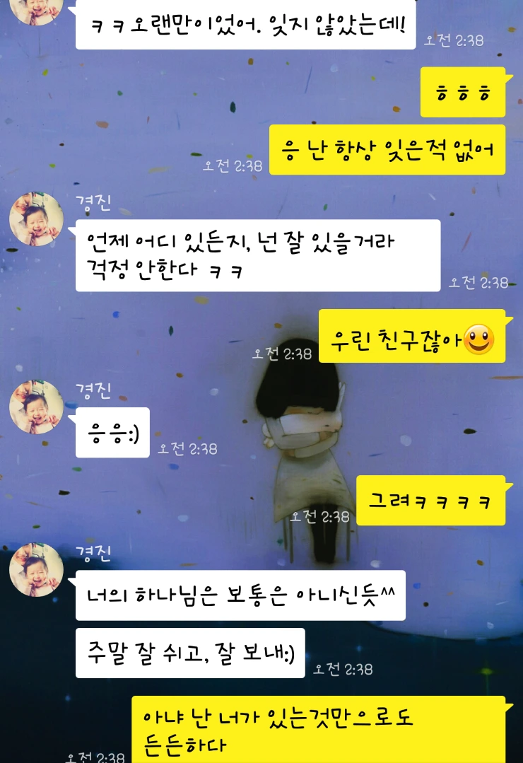 15년을 친구로 지내며 나의 모든 인생 스토리를 아는 그녀. 몇 년동안 소식이 끊겼던 그녀로부터도 정말 갑자기 연락이 왔다.