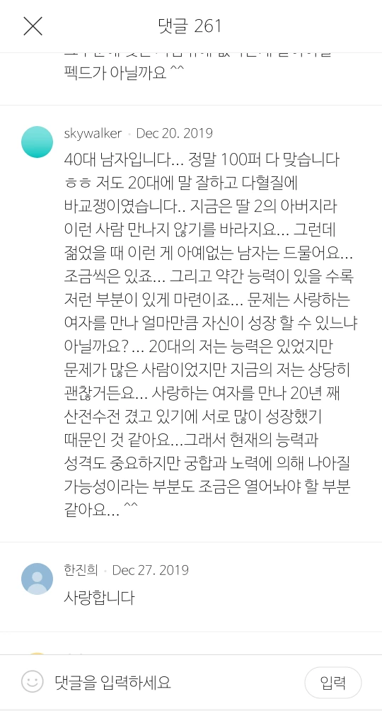 그리고, 끝으로 나의 글에 이런 명언을 써주신 구독자님^^