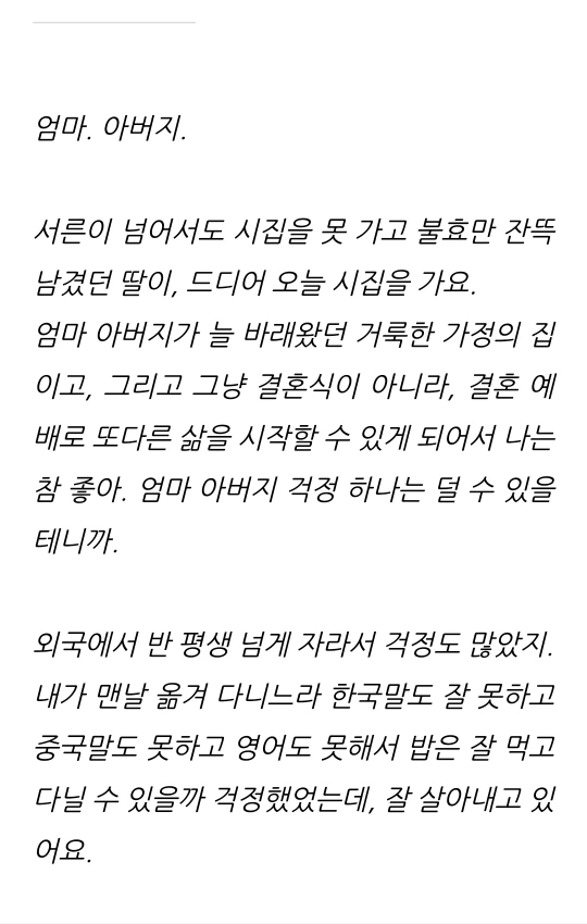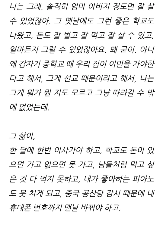 제가 그토록이나 사랑했던 저의 고향 상해를 버리듯, 도망쳐 나왔기에,