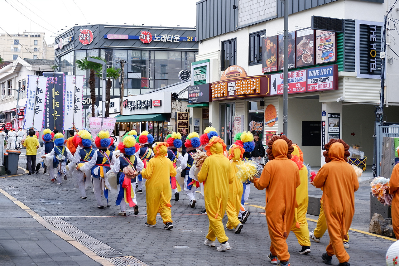 서귀포 초입에 들어서자마자 축제의 열기가 느껴졌다. 거리 퍼레이드가 시작되고 있었고, 정말 많은 사람들이 거리로 나와 있었다. 공들여 준비한 퍼레이드는 예상보다 훨씬 더 즐거웠다. 각 마을의 특색이 살아있는 의상과 소품들, 그리고 주민들의 밝은 표정이 거리를 가득 채웠다. 화려한 장면들 사이로 비눗방울 총을 든 근엄한 어르신이 내뿜던 비눗방울, 사탕과 귤을 건네던 아이들 같은 소소한 순간들이 오래 마음에 남았다.