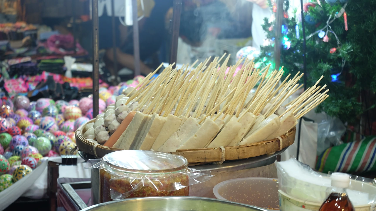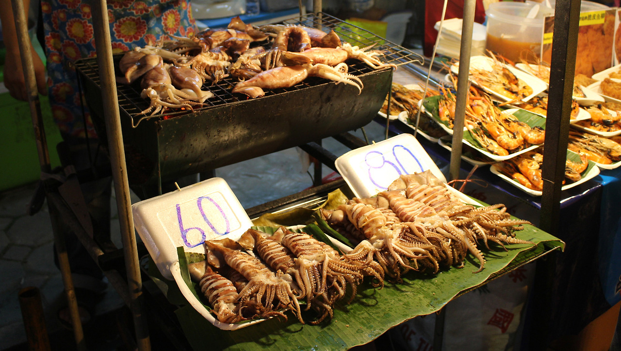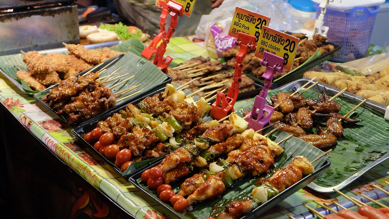 닭고기, 돼지고기, 흰 소세지, 커다란 새우 등 종류로 다양하다. 솔솔 풍기는 바베큐 냄새가 발길을 붙잡고 저렴한 가격에 양 손에 쥐고 먹게 된다.