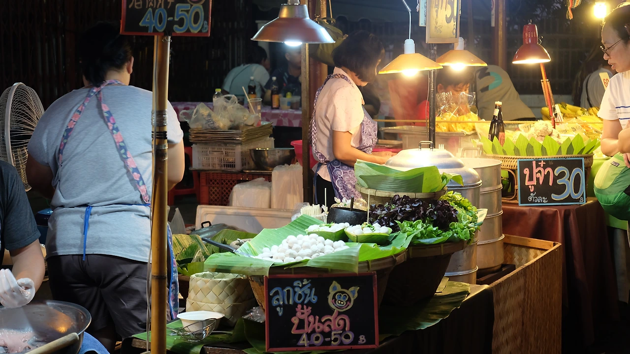 마치 뷔페를 간 듯한 착각을 일으키게 할 만큼 다양한 음식이 낮과 밤, 길거리 어디서든 만날 수 있다. 길거리 음식을 피하는 것이 더 어려울 수 있다. 시간대별로 만나는 음식군도 다양하다. 낮에는 쌀국수, 볶음밥과 닭고기, 팬케이크, 과일쥬스, 저녁엔 팟타이부터 꼬치구이까지 저렴하고 푸짐한 태국음식을 언제든 배불리 먹을 수 있다. 싼값으로 한 끼를 해결하려는 여행자들에게는 태국 길거리 음식에 환호할 수 밖에 없다.