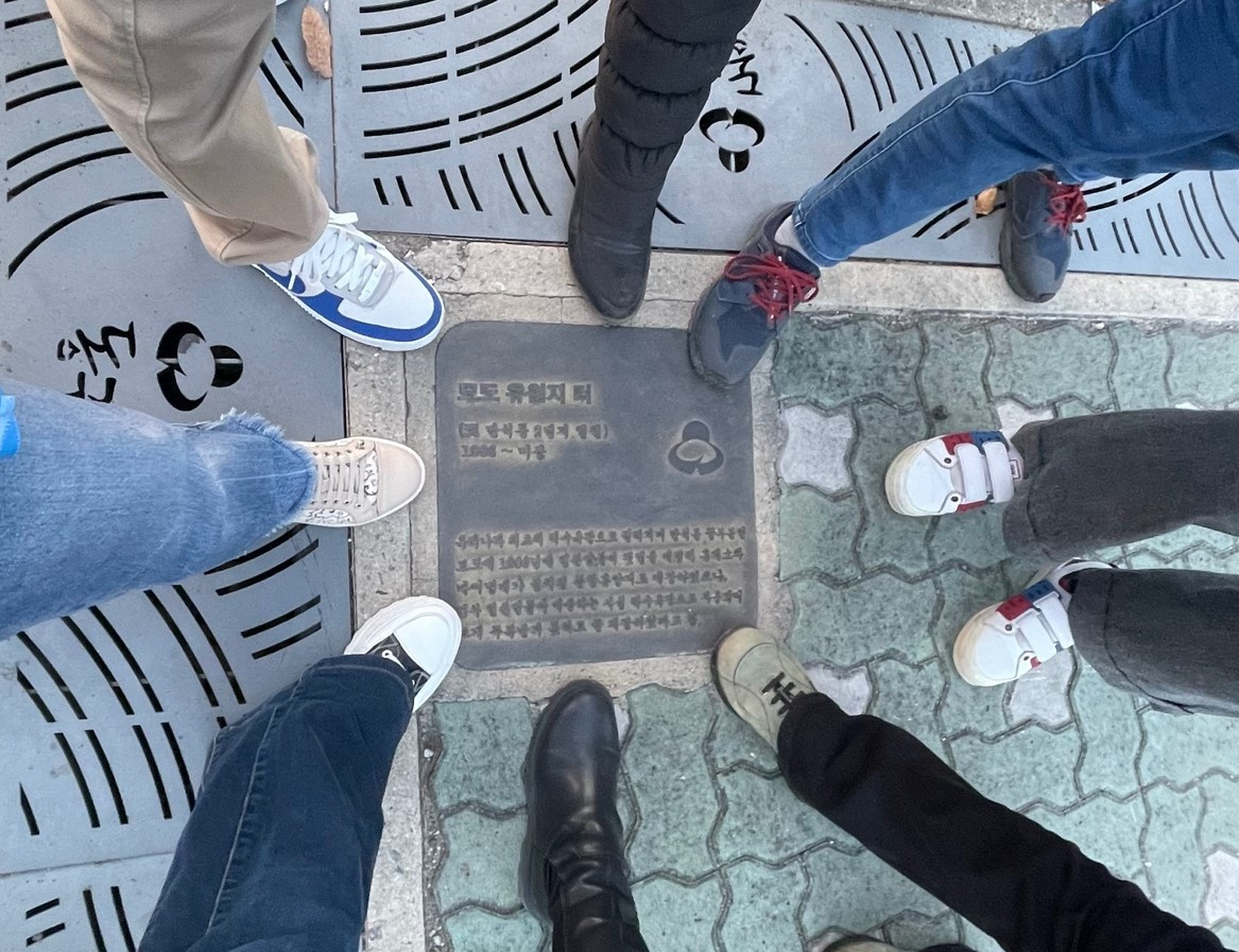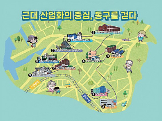 지금은 사라졌지만 그때 공장에서 부두로 군수물자를 실어 나르던 공업철도가 있었단다. 징병해 온 사람들이 살던 숙소인 개미굴 같은 노동자들의 사택도 있었단다. 옛 간이역 모형과 길바닥에 그려진 철길이 그때 역사를 기록하고 있다.