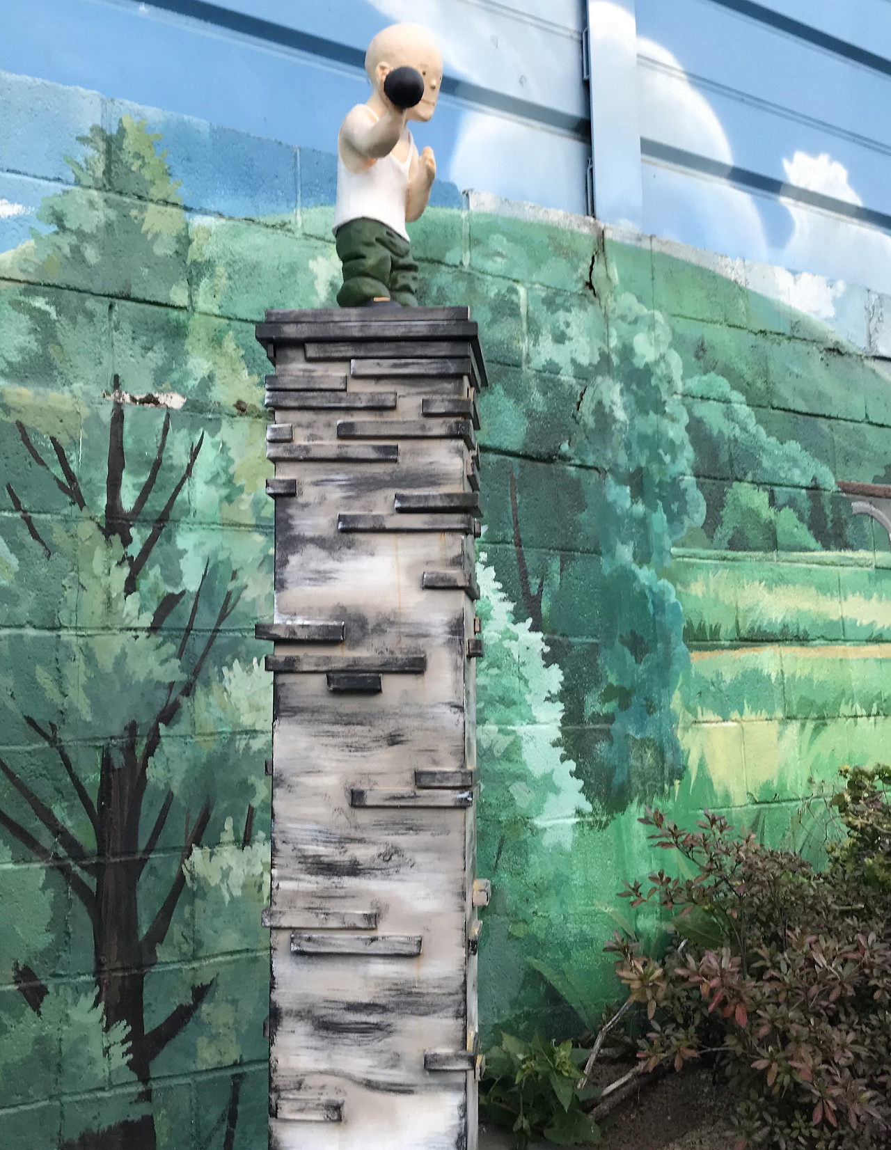 간이역 옆에는 벽돌공장 굴뚝에 한 사람이 애처롭게 서 있는 조각작품이 있다. 작가 오종현의 작품으로 <난쟁이가 쏘아 올린 작은 공>(이하 ‘난쏘공’)을 표현했다고 한다.