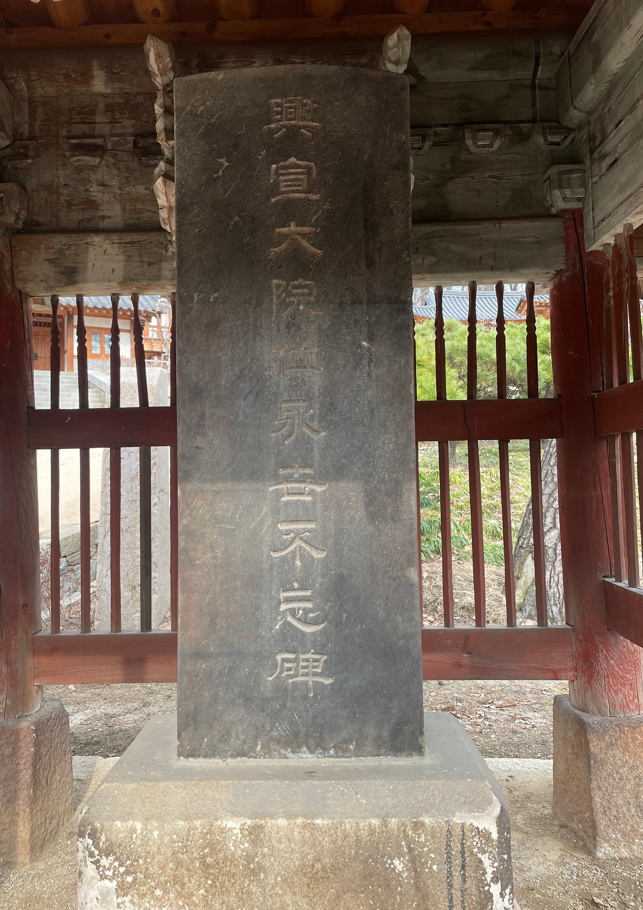 판전 가까이 있는 '흥선대원군 영세불망비'를 보며 인연의 연결성을 본다. 흥선대원군은 추사 김정희의 제자였다. 안동김씨 세도권력이 하늘을 찌를 때 흥선군은 몸을 낮춰 건달처럼 생활한다. 남인계통이던 흥선군이 괜히 깐족대다간 숙청되기 십상이었기 때문일 것이다. 그러나 그는 야망이 있었다. 김정희를 찾는다. 사제지간의 관계는 그렇게 이어졌다. 흥선대원군은 특히 난을 잘 그렸다. 추사 김정희도 압록강 동쪽에서 난은 흥선이 최고라고 했다. 그래서 흥선대원군 난은 그의 호를 따서 특별히 '석파란'이라고 했다.