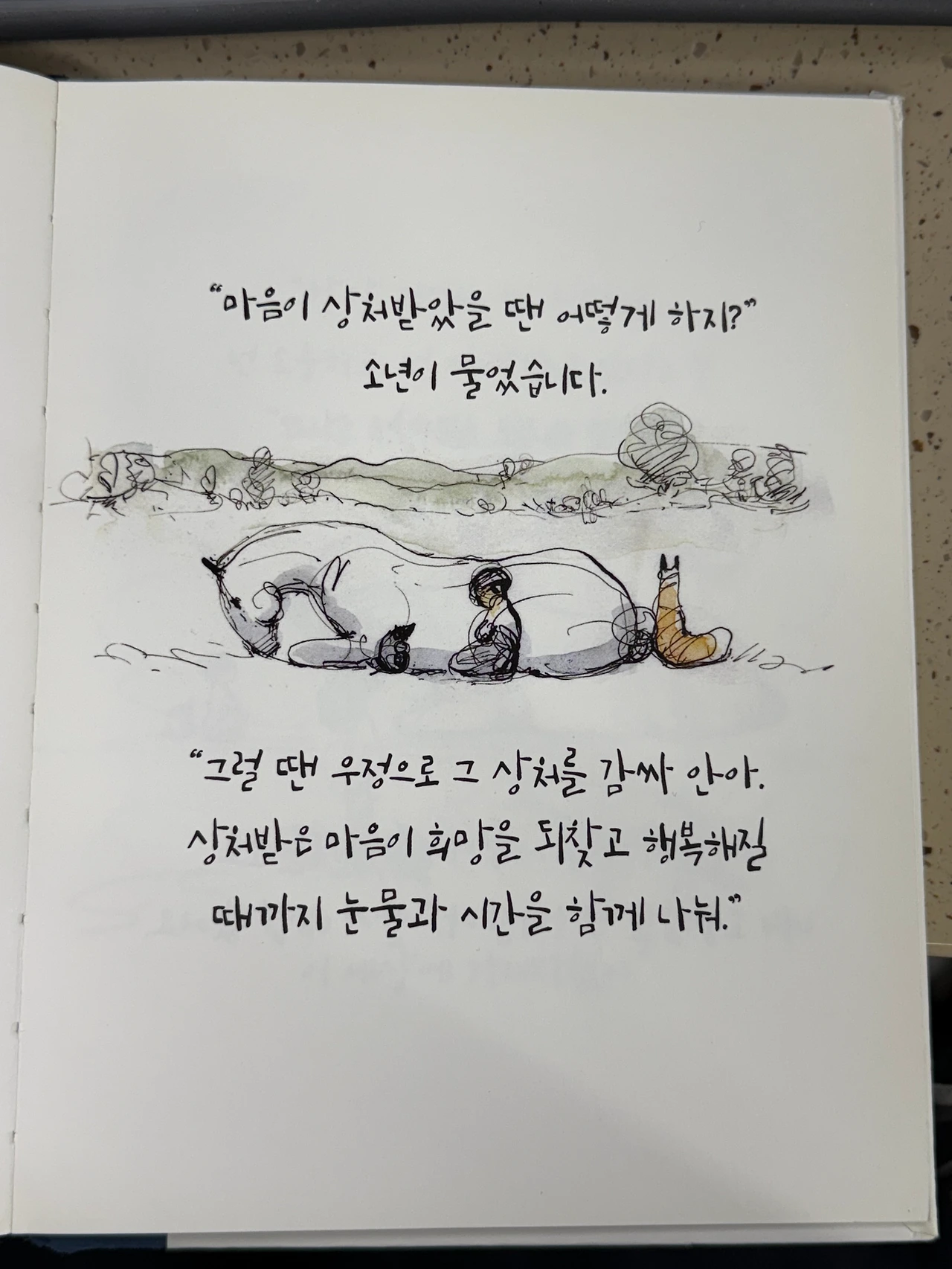 "상처받은 마음이 희망을 되찾고 행복해질 때까지 눈물과 시간을 함께 나눠"