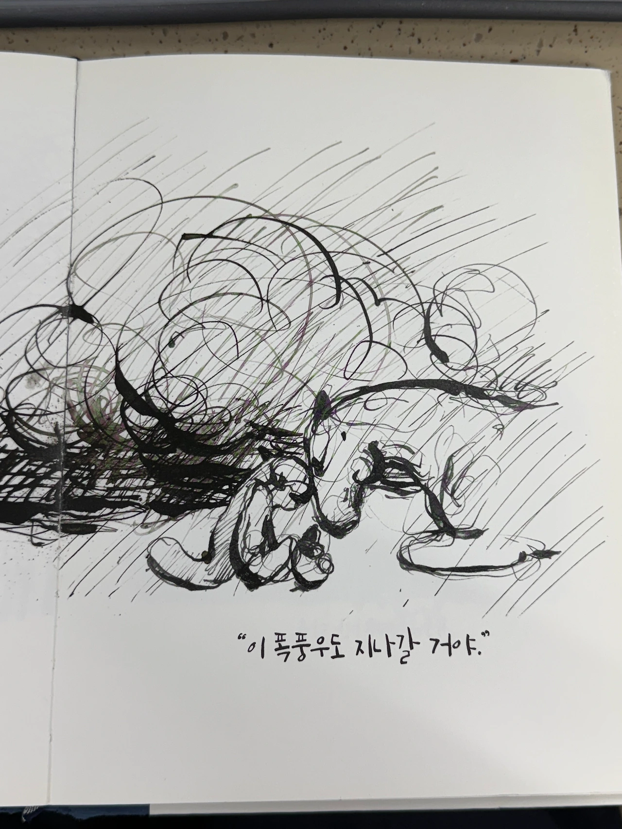 따뜻함보단 폭풍우의 힘듦이 조금 더 느껴지는 그림체인 것 같아요.