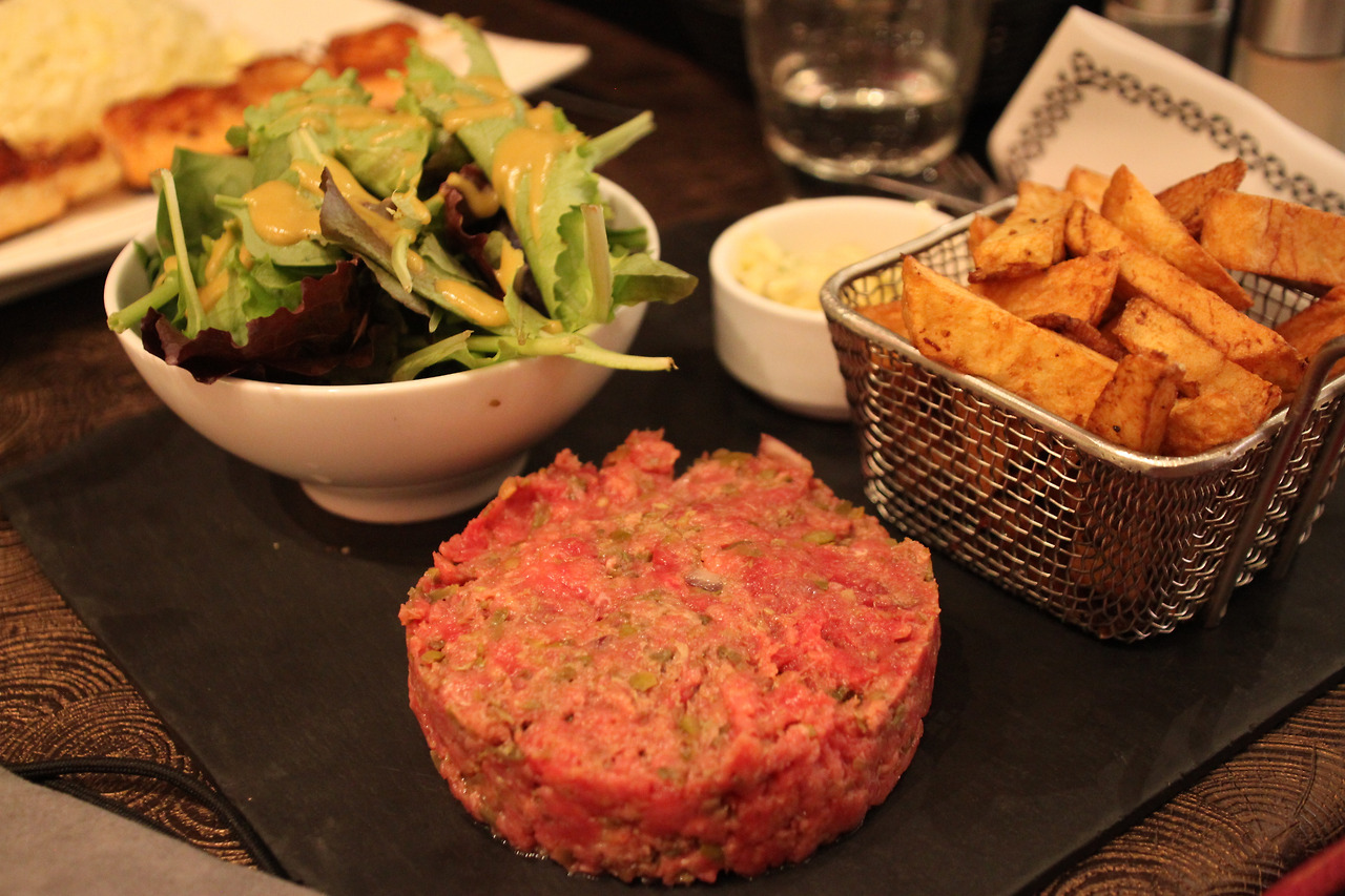 아예 완전히 부드럽게 먹을 수 있도록 갈은 소고기 요리도 있으니, 타타르(Tartare) 스테이크라고 합니다. 우리의 육회와 비슷한데, 갈은 소고기에 양파, 소금, 올리브유와 계란을 섞어 뭉쳐 내옵니다. 유래는 몽고의 유목민들이 갈은 양고기를 다져서 말 안장에 달고 이동하며 먹던 음식인데, 말을 타고 이동하는 동안 갈은 고기가 더 다져져서 부드럽게 되어 더 먹기 편하게 되었다고 합니다. 이것이 칭기스칸의 손자 쿠빌라이 칸이 러시아를 침공했을 때 러시아에 전해져 지금과 같은 형태로 발전하며 타타르 스테이크라 불렸는데 이것이 당시 북해 무역의 중심지였던 독일의 함부르크를 통해 유럽전역에 퍼지게 되었고, 양고기는 유럽인들에게 더 익숙한 소고기로 대체되었으며 미국으로 이민간 함부르크 출신 독일 이민자들에 의해 미국에 퍼지게 되었습니다. 이미 눈치챘겠지만 이것이 우리가 지금 먹고 있는 햄버거의 유래입니다. 즉 타타르 스테이크가 햄버거 스테이크로 그리고 다시 햄버거로 변해 온 것 입니다. Hamburger라는 말이 Hamburg(함부르크) + er(어느 지역의, 또는 누구의)라는 뜻이니, 함부르크 사람의, 함부르크 지역의 스테이크란 뜻이 됩니다. 지금은 유럽에도 미국식 햄버거 요리 집이 많습니다. 주재원 시절, 독일 동료들과 종종 가곤 했는데, 한번은 같이 간 친구가 함부르크의 옆 도시인 킬(Kiel)출신이어서 이 이야기를 들려줬습니다. 사실 이 햄버거는 미국 음식이 아니라 너희 독일 음식이야 게다가 너의 고향, 함부르크꺼라고. 내심 그 친구가 뿌둣하게 생각하실 바라고 한 얘긴데, 그 친구뿐만 아니라 동행했던 모든 독일 동료들은 다들 반신반의하며, 이건 그냥 미국 요리야하고 별 관심을 안 보여서 그냥 그렇게 멋쩍게 끝나고 말았습니다. 아마 음식에 열광하는 이탈리아 친구들이었다면 그날 난리가 났었겠지만, 역시 요리에 별 관심없는 독일 친구들다웠습니다.