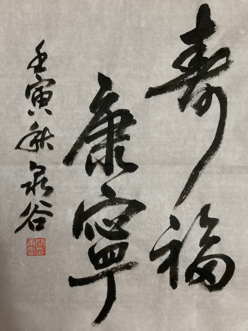 엄마의 건강을 염원하는 글을 써달라고 하면서 “건강이라는 단어를 써야 할까요?” 물어봤더니 처음에 만수무강으로 말하며 붓을 들으셨다. 그러나 붓끝에서 나온 단어는 만수무강이 아니었다. 잠시 생각하시더니 붓에 강약 조절하며 쓰셨고, 한 글자 마칠 때마다 읽어주시니 “수복강녕(壽福康寧)”이었다. 인터넷을 검색하니 ‘오래 살고 복을 누리며 건강하고 평안함’을 뜻한다고 나와 있었다. 할아버지도 그런 의미로 쓴 것이라고 말해주셨다. 글자에 뿜어져 나오는 힘을 받아 우리 엄마도 건강하고 평안해질 것이라 믿는다. 집에 돌아오는 길에 만난 서예 할아버지들을 보면서 나도 ‘저렇게 늙어가고 싶다’라는 생각이 들었다. 할아버지가 써주신 글자를 서류 봉투에 잘 넣어 안고 왔다. 잘 보관해야겠다.