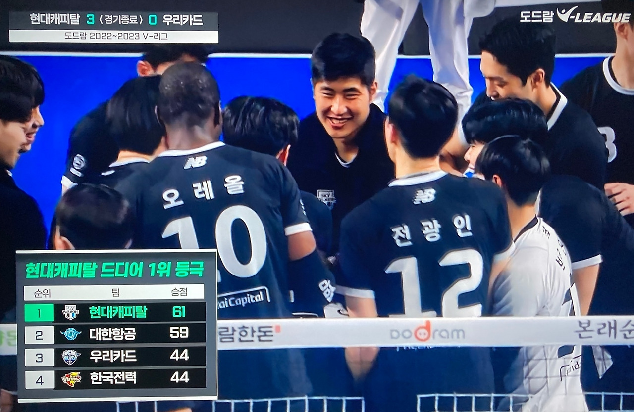 첫 시즌 1위 탈환 그것도 봄 배구를 향해 달려가는 시점에 1위 탈환이라 벅차오르는 감정을 주체할 수 없다.