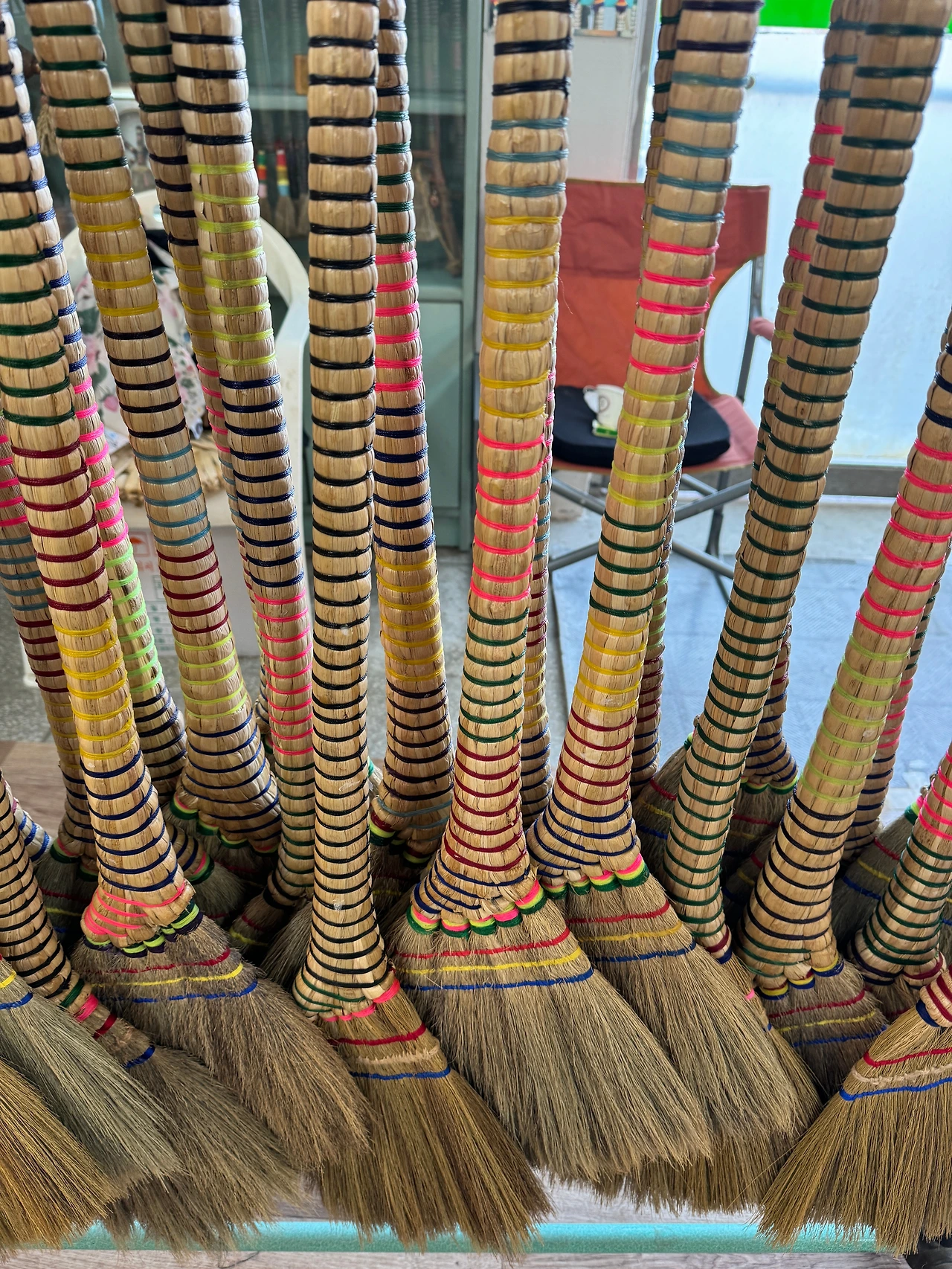 한 길을 평생 살아온 장인이 존경스러웠다. 아버지가 살아계셨다면 비슷한 연세일 것이다. 내가 백일도 안 돼 돌아가셨기에 아버지뻘 되시는 분들이 나를 편안하게 대하면 그저 고맙다. 장인은 나를 편히 대하며 가게에 전시된 빗자루에 관해 설명해 주셨다. 그리고 이내 가게 한쪽에 마련된 작업장에서 나와 엄마에게 차와 과일을 내어주셨다. 빗자루 사러 왔는데 왜 호강인가 싶었다. 할아버지로부터 빗자루에 대한 설명과 유머 있는 농담을 여러 개 들었다.